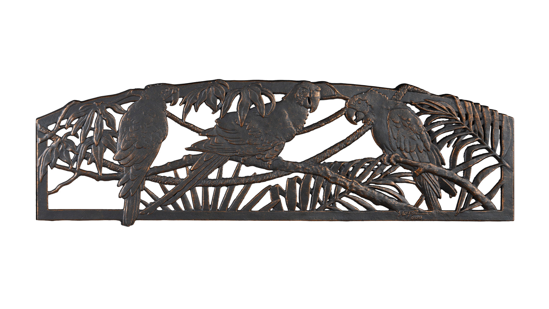 Bring a touch of the tropics to any climate with the Parrot Swing, a vibrant addition to your patio, porch, or garden. This artist-designed outdoor swing features three colorful parrots surrounded by palm leaves, capturing the essence of warm-weather relaxation and island-inspired style. Crafted for both beauty and durability, it combines a sturdy tube steel frame with a cast iron seat and back, suspended by powder-coated steel chains for a smooth, quiet, and relaxing swing motion.